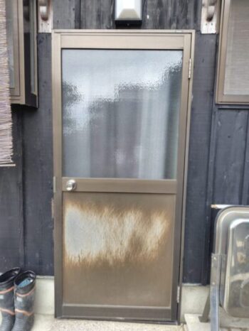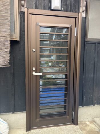 風が入るよう、勝手口は網戸付きタイプへ変更
